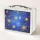 XMAS Blue Background mit goldenen Schneeflocken Metall Brotdose