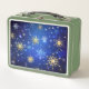 XMAS Blue Background mit goldenen Schneeflocken Metall Brotdose