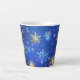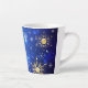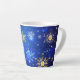 XMAS Blue Background mit goldenen Schneeflocken Milchtasse