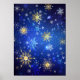 XMAS Blue Background mit goldenen Schneeflocken Poster