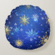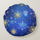 XMAS Blue Background mit goldenen Schneeflocken Rundes Kissen