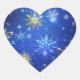 XMAS Blue Background with Golden Snowflakes Herz-Aufkleber