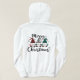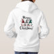 Drei festliche Zwerge stehend, jedes mit einzigartigen, spielerischen Merkmalen. Der erste Gnome auf dem links hat einen roten, karierten Hut, einen langen, weißen Bart, der mittlere Gnome trägt einen weißen, karierten Bart, aus dem sein Bart unter dem Hut herausguckt, der dritte Gnome auf der rechten Seite ist in einem grünen, karierten Hut gekleidet, . umgeben von den Worten Frohe Weihnachten