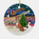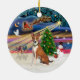 Ein Basenji ist der Mittelpunkt dieser Entwürfe, die einige der wichtigsten Symbole der Weihnachtszeit, einschließlich der drei weise Männer, die vom Stern von Bethlehem geführt werden, ein Schneemann, ein Weihnachtsbaum, eine Taube des Friedens und Santa und seine Rentiere, die durch den Sternenhimmel geflogen.