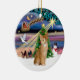 Xmas Magic - Orange - weiße Tablette Katze 40 Keramik Ornament