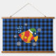 Xmas Tropischer Cartoon auf Blue Buffalo Muster Wandteppich Mit Holzrahmen