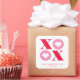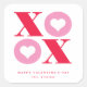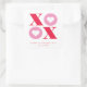 Ideal für Goody-Taschen und Geschenkverpackungen. Dieser moderne quadratische Valentinstag Aufkleber hat abgerundete Ecken, große abwechselnd rot und rosa Xoxo-Typ mit weißen Herzen in der Mitte der o's auf einem weißen Hintergrund.
