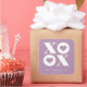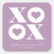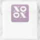 Ideal für Goody-Taschen und Geschenkverpackungen. Dieser moderne quadratische Valentinstag Aufkleber hat abgerundete Ecken, große weiße Xoxo-Typ mit weißen Herzen in der Mitte der o's auf einem Lavendel, lila Hintergrund.