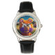 Kinder Edelstahluhr mit schwarzem Lederarmband