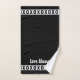 Dieses elegante Badetuch-Design verfügt über ein weißes Handtuch mit einem schwarz-weißen XOXO-Rahmen oben und unten. Enthält die personalisierten Worte "Liebe immer" in Weiß am unteren Rand des Handtuches.