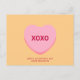 XOXO Kisses und Umarmungen rosa Konversation Herz Valentinstag oder Galentinstag modernen Spaß niedliche personalisierte Postkarte. Vollständig anpassbarer Text. So können Sie die Nachricht sowohl im Herzen als auch im unteren Text personalisieren und einzigartig machen. Oder sie löschen. Rosa Herz auf hellorangefarbenem Hintergrund. Alle Farben können bearbeitet werden. Diese Karten sind ideal für Kinder Klassenschule Valentine's Day Freunden feiern.