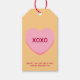 XOXO Kisses und Umarmungen rosa Konversation Herz Valentinstag modernen Spaß niedlichen personalisierten Geschenktags. Vollständig anpassbarer Text. So können Sie die Nachricht sowohl im Herzen als auch im unteren Text personalisieren und einzigartig machen. Oder sie löschen. Rosa Herz auf hellorangefarbenem Hintergrund. Alle Farben können bearbeitet werden. Diese Geschenkmarken sind großartige Gunst Tags für Kinder Klassenraum Schule Valentine's Day Freunden feiern.