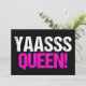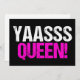 Yaasss Queen. Yass Queen ist ein kurzes Pop-Kulturangebot, das von sassy Girls und Diva Drag Queens verwendet wird. Eine niedliche schwarz-schwarze und Hot-Pink-Karte.