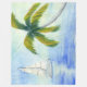 Der tropische Strand. Yacht am Meer Palma an einem sonnigen Tag. Wasserfarbe Die Aquarellbilder wurden gezeichnet und gescannt. Das Bild wird ein gutes Geschenk und eine wunderbare Innendekoration.