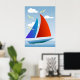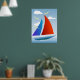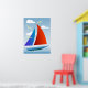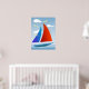Ein Segelboot auf einem hellblauen Meer mit Möwen, die herumfliegen