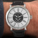 Uhr, Klassische Damenuhr mit schwarzen Lederarmband