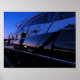 Yacht am Yachthafen während einer blauen Stunde gefangen mit Sonnenuntergang färbt den Horizont und Reflektion eines Bootes und Yachthafen sichtbar von der Yachtseite Plakat.