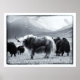 Die Himalaya-Herde von Yaks in schneebedeckter Bergregion, die an das Hochplateau von Ladakh/Tibet grenzt. Schwarz-Weiß-Foto aus hohen Höhen (ca. 5.000 m), in der Mitte befindet sich ein riesiger weißer Hairyak. Foto ist mit Reisereien von majestätischen Bergen - dem Himalaya. Dies ist ein Plakatdruck ohne Unterschrift. Sie können eine individuelle Größe und Qualität des Papiers auswählen. Reise/Ladscape Serie - The World of Wonders. Original Fotografie/Kunst/Design von work4dream.