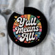 Liebe und Akzeptanz mit diesem Retro-Design 'Y'all Means All' mit einem groovy Regenbogenskript und Sonnenaufgang.
