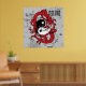 Yin Yang-Symbol und Dragon-Poster drucken, mit einem Drachen, der das Yang-陰-Symbol und den chinesischen Yin-Yang-Charakter in Schwarz, Weiß, Rot und Grau hält.