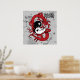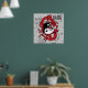 Yin Yang-Symbol und Dragon-Poster drucken, mit einem Drachen, der das Yang-陰-Symbol und den chinesischen Yin-Yang-Charakter in Schwarz, Weiß, Rot und Grau hält.