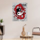 Yin Yang-Symbol und Dragon-Poster drucken, mit einem Drachen, der das Yang-陰-Symbol und den chinesischen Yin-Yang-Charakter in Schwarz, Weiß, Rot und Grau hält.