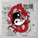 Yin Yang-Symbol und Dragon-Poster drucken, mit einem Drachen, der das Yang-陰-Symbol und den chinesischen Yin-Yang-Charakter in Schwarz, Weiß, Rot und Grau hält.