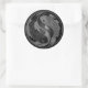 This unique yin yang design feature two stylized koi fish. A traditional Japanese fish appears in both sides of this symbol for natural balance. The scales of the fish are defined by the negative space in between small half circles that run down the length of the bodies. The Simple Are painted a solid color that mirrors the opposite side if the yin yang. This stylish pattern is a beautiful interpretation of this ancient symbol.'