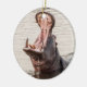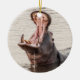 Keramik dekorativer Ornament mit einem Bild eines Nilpferds in einem See, der mit einem breiten Mund auf beiden Seiten offen ist.