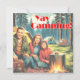 Camping macht Spaß, oder? Macht es Spaß, wenn es regnet? Nicht so sehr. Diese lustige und sarkastische Grafik zeigt eine lächelnde Familie, die während des Campings getrunken wird