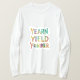 Ein fett grafischer Abschlag mit "Yearn, Yield, Yonder" in einer dynamischen, farbigen Inkongruenz von Schriftart. Ein spielerisches T - Shirt-Design mit den Begriffen "Yearn, Yield, Yonder" in einer Mischung von unpassenden Farben und Schriftart.