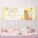 Feiern Sie Ihren großen Meilenstein mit diesem bezaubernden "One Golden Year"-Banner mit einem goldenen Retriever-Welpe in einem Party-Hut, Kuchen, Ballons und Gingham-Akzenten. Dieses Banner ist perfekt für einen ersten Geburtstag und macht einen süßen und festlichen Eindruck hinter dem Desserttisch oder am Eingang zum Party. Personalisieren Sie sich mit dem Namen Ihres Kindes für ein herzzerwärmendes und Foto-ready Party Detail!