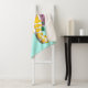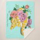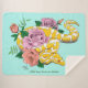 Ein gelber Albino-Ball-Python kommt um rosa und pfirsichfarbene Rose in einem aquamarinen Hintergrund herum.