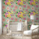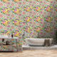 Ein gelber Albino-Ball-Python kommt um rosa und pfirsichfarbene Rose in einem aquamarinen Hintergrund herum.