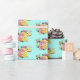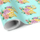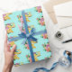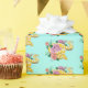 Ein gelber Albino-Ball-Python kommt um rosa und pfirsichfarbene Rose in einem aquamarinen Hintergrund herum.