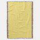 Yellow and gray patterned blanket with fringed edges, shown in both horizontal and vertical orientations on a white background.