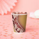 Yellow and red floral patterns is a feminine AI art that shows lace on a yellow background. They are the perfect paper cups to impress your guests.