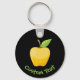 Gelber Apfel mit Blattsymbol Benutzerdefinierte Hintergrundfarbe. Benutzerdefinierter Text auf beiden Seiten.