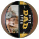 Yellow Best Vater je Vater Typografie Foto Basketball. Fügen Sie Ihr Foto und Ihre Namen hinzu. Modernes Design mit weißer und gelber Typografie auf schwarzem Hintergrund mit gelben Streifen. Der süße Sport-Sake für einen Papa zum Geburtstag, Vatertag oder Weihnachten.