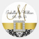 Yellow Black Damask Wedding Favor Sticker