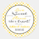 Hübsche Büffetaufkleber in Gelb und Schwarz-Polka Dot personalisiert, die sich perfekt für eine Hochzeit oder ein Brautparty eignen. Sie können die Namen und das Hochzeitsdatum personalisieren, indem Sie es personalisieren. Sie können jeden anderen Text auch im Abschnitt Anpassen ändern. Vergewissern Sie sich, dass Sie die Größe, die Sie mit diesen gewollt haben, erhalten, da es zwei Größen gibt.