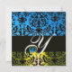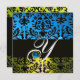 YELLOW BLUE BLACK DAMASK MONOGRAM Saphir Einladung