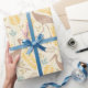 Yellow Blue Carmel Spring Floral and Crane Pattern Geschenkpapier