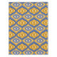 Psychedelische Tischdecke mit bizarren Augenmustern indigoblau und honeycomb gelb Farben. Dieses spaßige eklektische, sonderbare Muster ähnelt aufgrund seiner geometrischen Formen dem zeitgenössischen Stil der Mitte des Jahrhunderts.