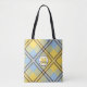 Yellow Blue Kariert Tartan Monogram Script Wedding Tote Bag Moderne, elegante und modische Tasche mit "personalisierter Name & Monogramm" auf gelb/blau kariertem tartan Hintergrund. Personalisieren Sie dieses schöne Produkt als ein wunderbares Geschenk für eine Braut, Brautjungfrau, Lehrerin, Freundin, Mutter oder irgendein Mitglied Ihrer Familie, indem Sie Ihren Namen oder Text / ändern Sie den Schriftart, Farbe, Größe und Position.