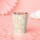 Fügen Sie Ihrer kleinen Geburtstagsparty eine abschließende Touch mit diesen Papiertassen hinzu, die ein Farbmuster auf einem gelben Hintergrund aufweisen.