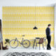 Yellow Bold Geometric Sun Wallpaper verleiht jedem neuen Apartment einen modernen, eleganten Touch.