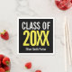 Moderne und kühne Graduierungsparty Papierservietten in schwarz und gelb Farbe auf einem schwarzen Hintergrund. Personalisieren Sie es mit Ihrem Abschluss Jahr und Namen. Verwenden Sie die Designtools, um eine beliebige Hintergrundfarbe auszuwählen, Text, Schriftart und Farben zu ändern, um ein einzigartiges Design zu erstellen. Andere Farben sind verfügbar. Koordiniert mit der Kollektion "Moderner feiner Abschluss"