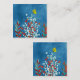 A vibrant, textured digital illustration featuring a whimsical nature scene set against a rich, textured cerulean blue background. The style is modern and graphic, with a heavy emphasis on color contrast and layered textures. A single, bright yellow butterfly is positioned in the upper right quadrant. It is illustrated with a simple black outline and subtle red speckles on its wings, appearing as if it is fluttering toward the plants below.