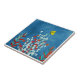 A vibrant, textured digital illustration featuring a whimsical nature scene set against a rich, textured cerulean blue background. The style is modern and graphic, with a heavy emphasis on color contrast and layered textures. A single, bright yellow butterfly is positioned in the upper right quadrant. It is illustrated with a simple black outline and subtle red speckles on its wings, appearing as if it is fluttering toward the plants below.